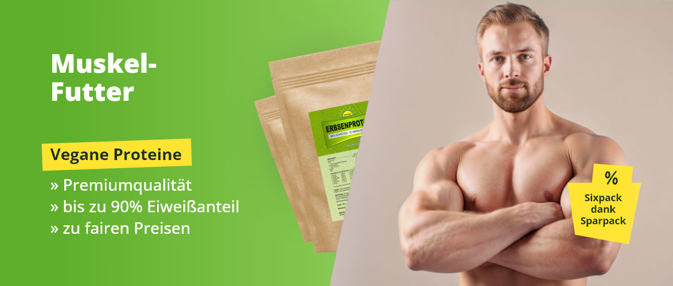 Hochwertiges Erbsenprotein mit 86% Eiweiß und hervorragendem Aminosäurenprofil. Vegan sowie gluten- und cholesterinfrei. Ohne Gentechnik und natürlich frei von Pestiziden, Allergenen, Hilfs-, Zusatz- und Füllstoffen. 1000 Gramm im Standbodenbeutel aus Kraftpapier (aluminiumfrei!) mit wiederverschließbarem Druckverschluss. Abgefüllt in Deutschland.
