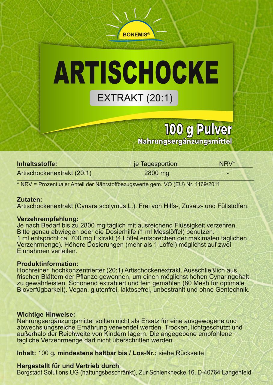 Bonemis® Artischocke, Extrakt (20:1), Premiumqualität ohne Zusätze, 100 g im Beutel