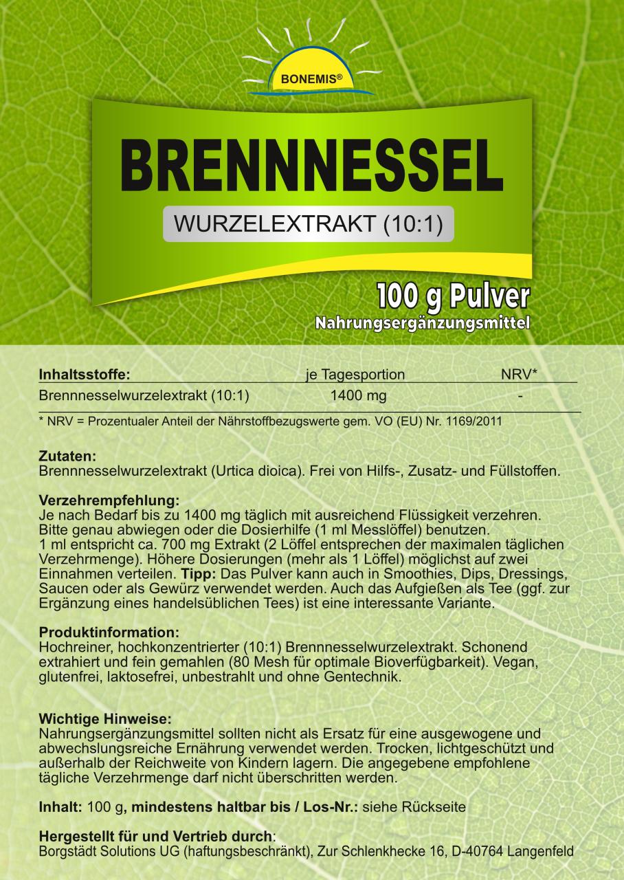 Bonemis® Brennnessel, Wurzelextrakt (10:1), Premiumqualität ohne Zusätze, 100 g im Beutel