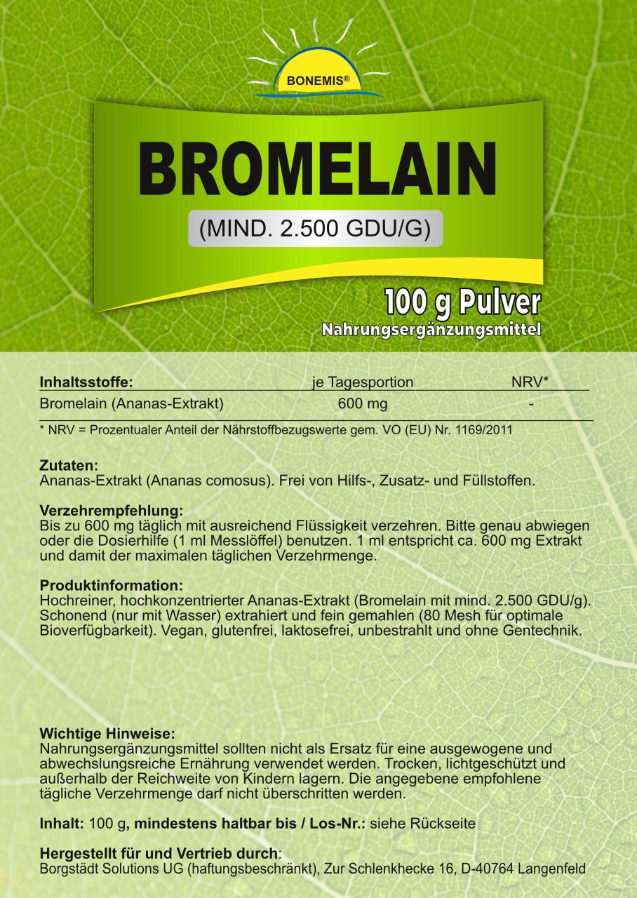 Bonemis® Bromelain (Ananas-Extrakt), mind. 2.500 GDU/g, ohne Zusatzstoffe, 100 g Pulver im Beutel