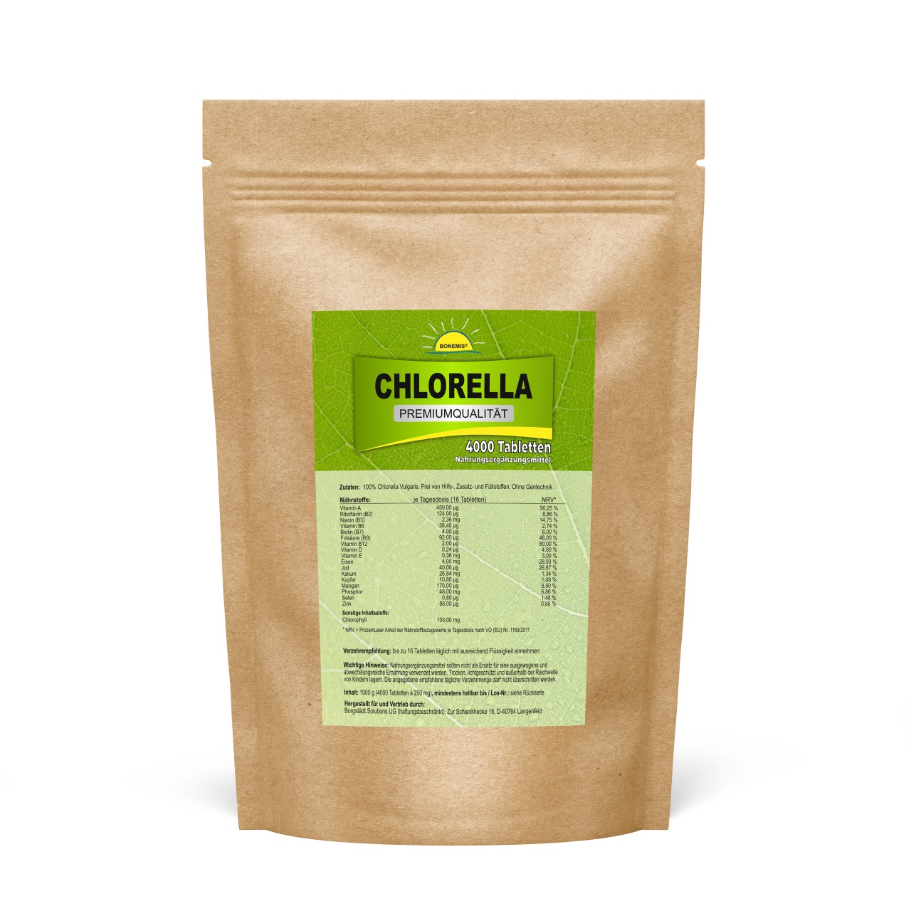 Bonemis® Chlorella Vorrats-/Nachfüllpack, 1000 oder 4000 Presslinge, ohne Zusatzstoffe, im Beutel