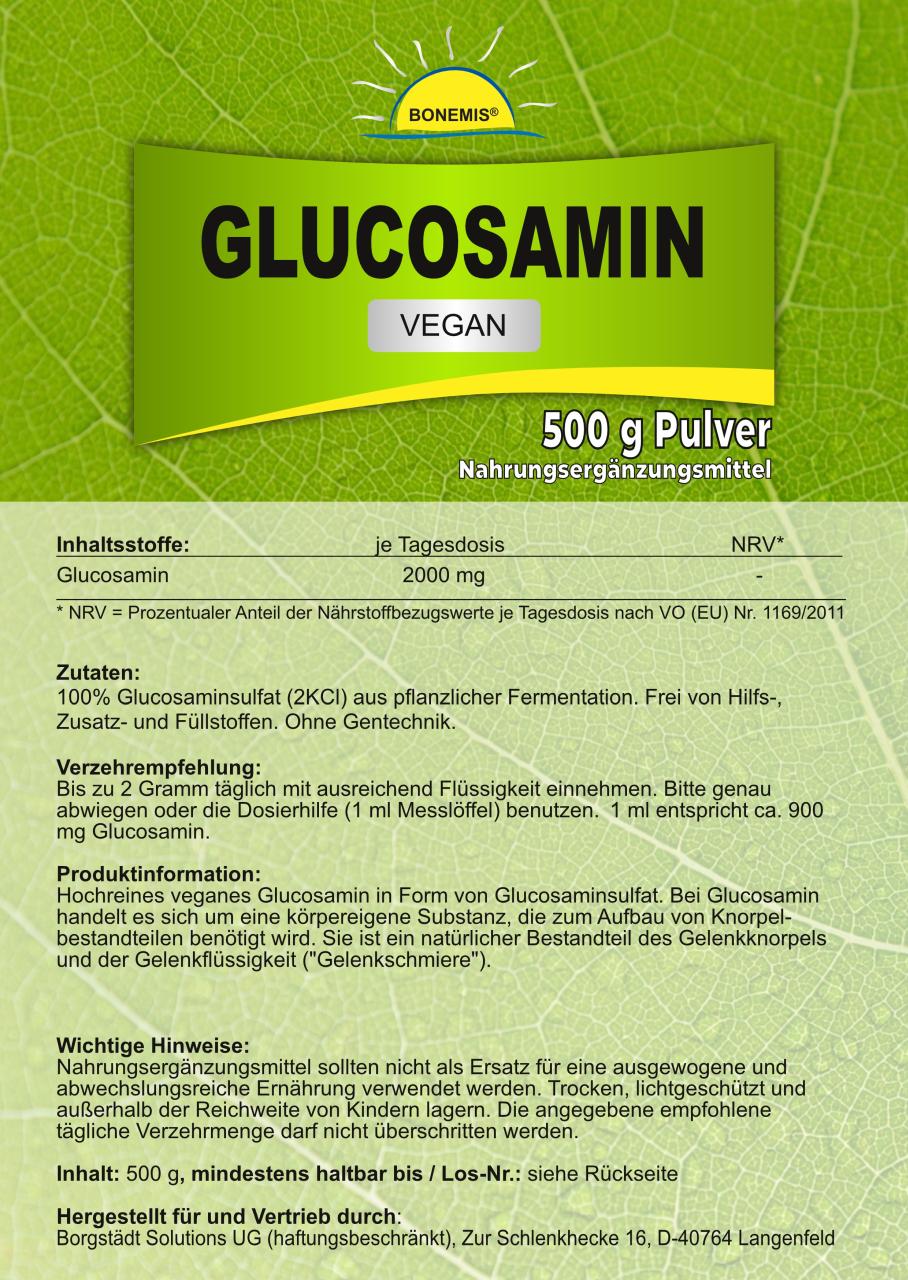 Bonemis® Glucosamin, vegan, Pulver, 500 g im Beutel