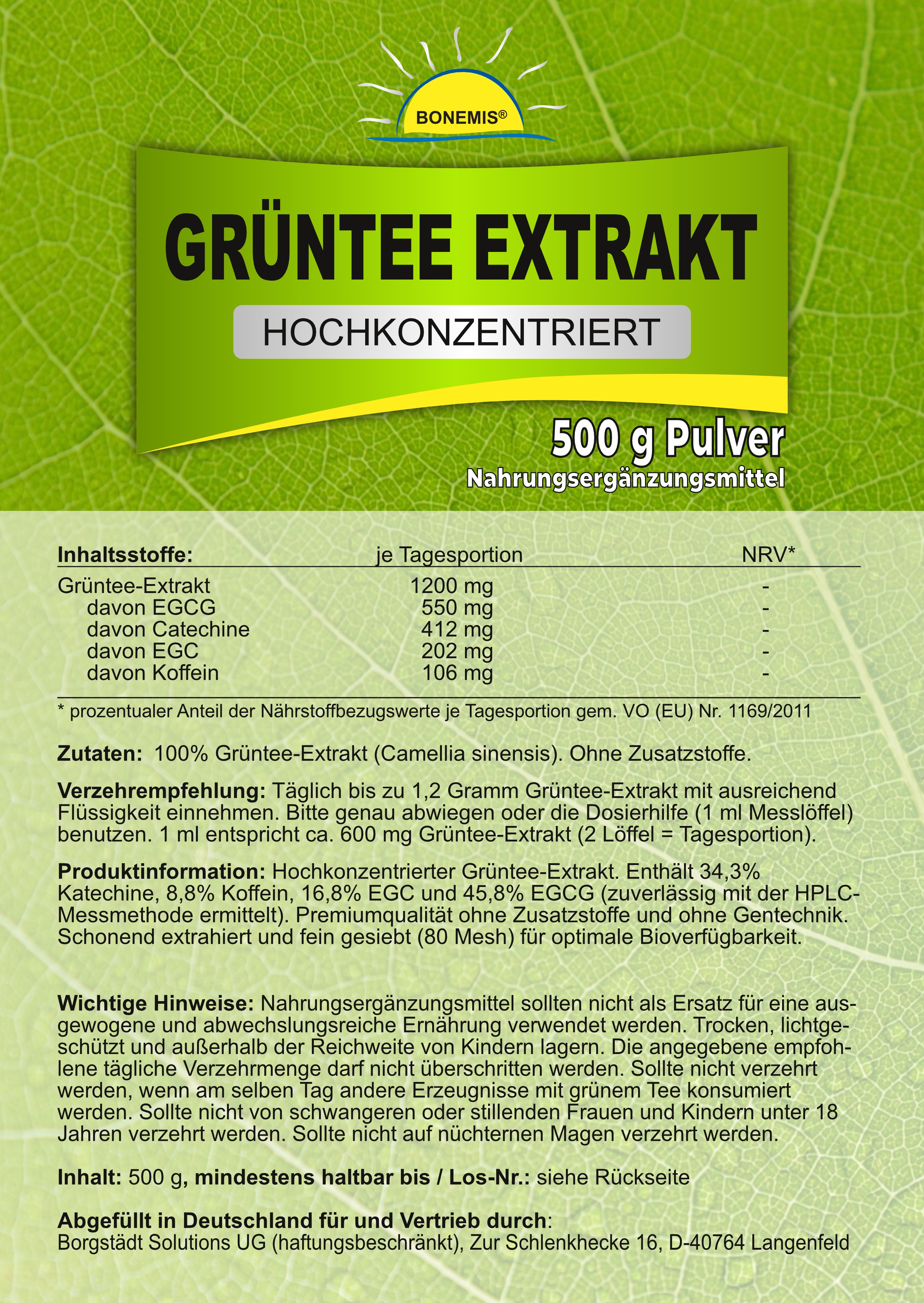 Bonemis® Grüntee Extrakt (hochdosiert, ohne Zusatzstoffe), 500 g Pulver im Beutel