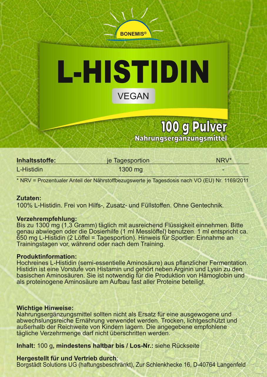 Bonemis® L-Histidin, veganes Pulver, ohne Zusatzstoffe, 100 g im Beutel