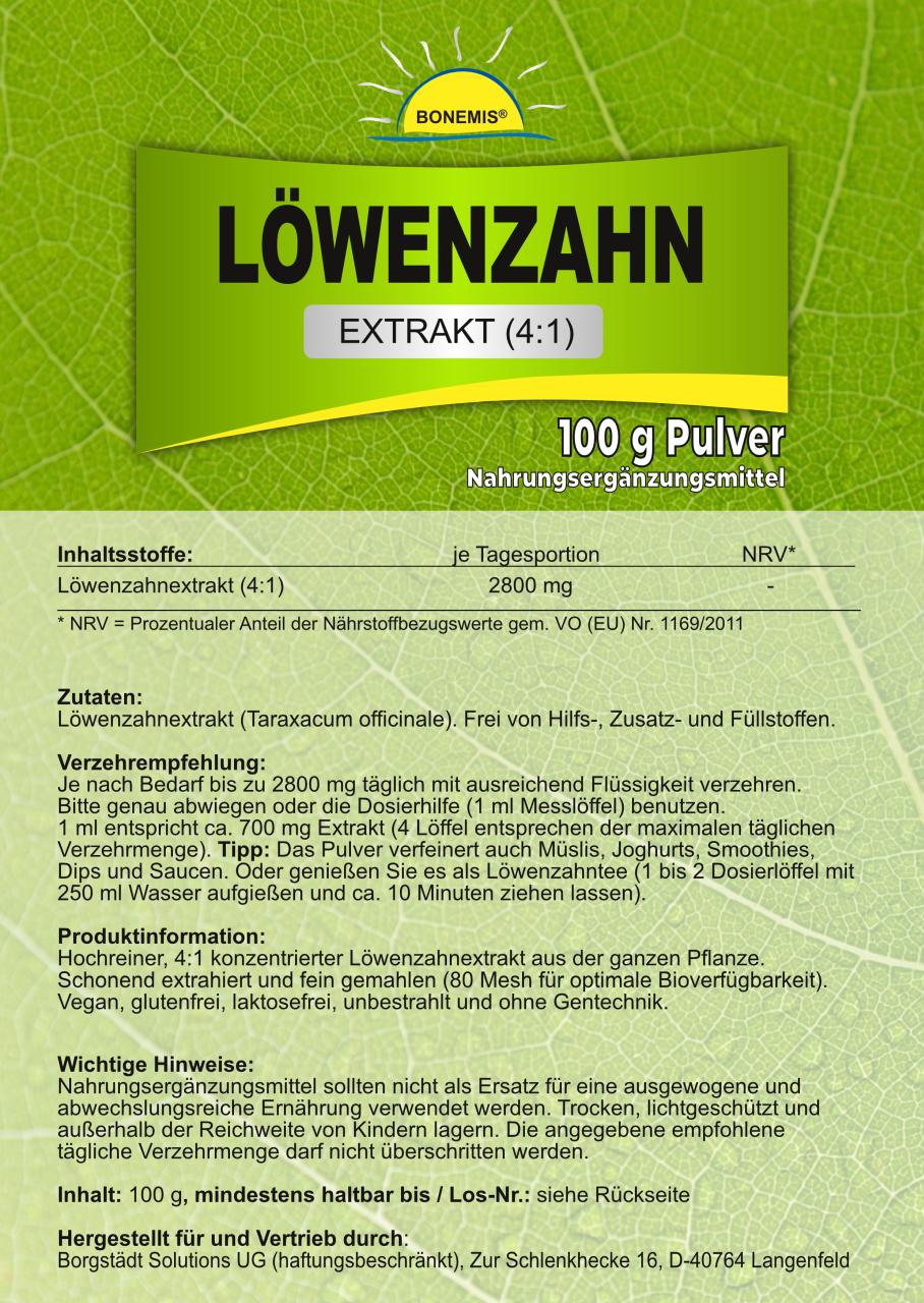 Bonemis® Löwenzahn, Extrakt (4:1), Premiumqualität ohne Zusätze, 100 g im Beutel