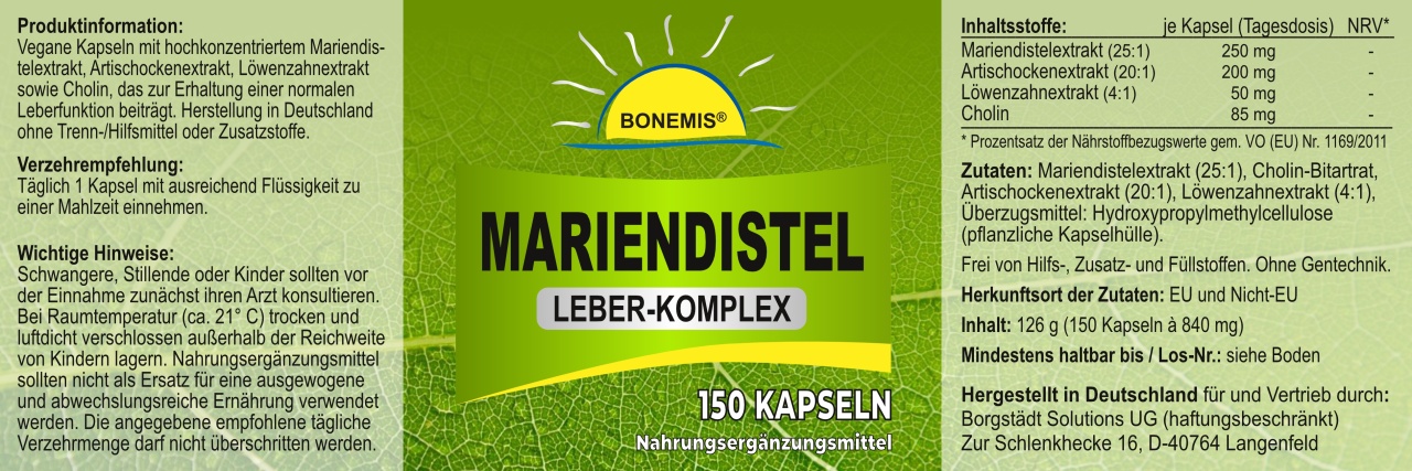 Bonemis® Mariendistel Leber-Komplex, 150 Kapseln ohne Zusatzstoffe, Premiumqualität im Glas
