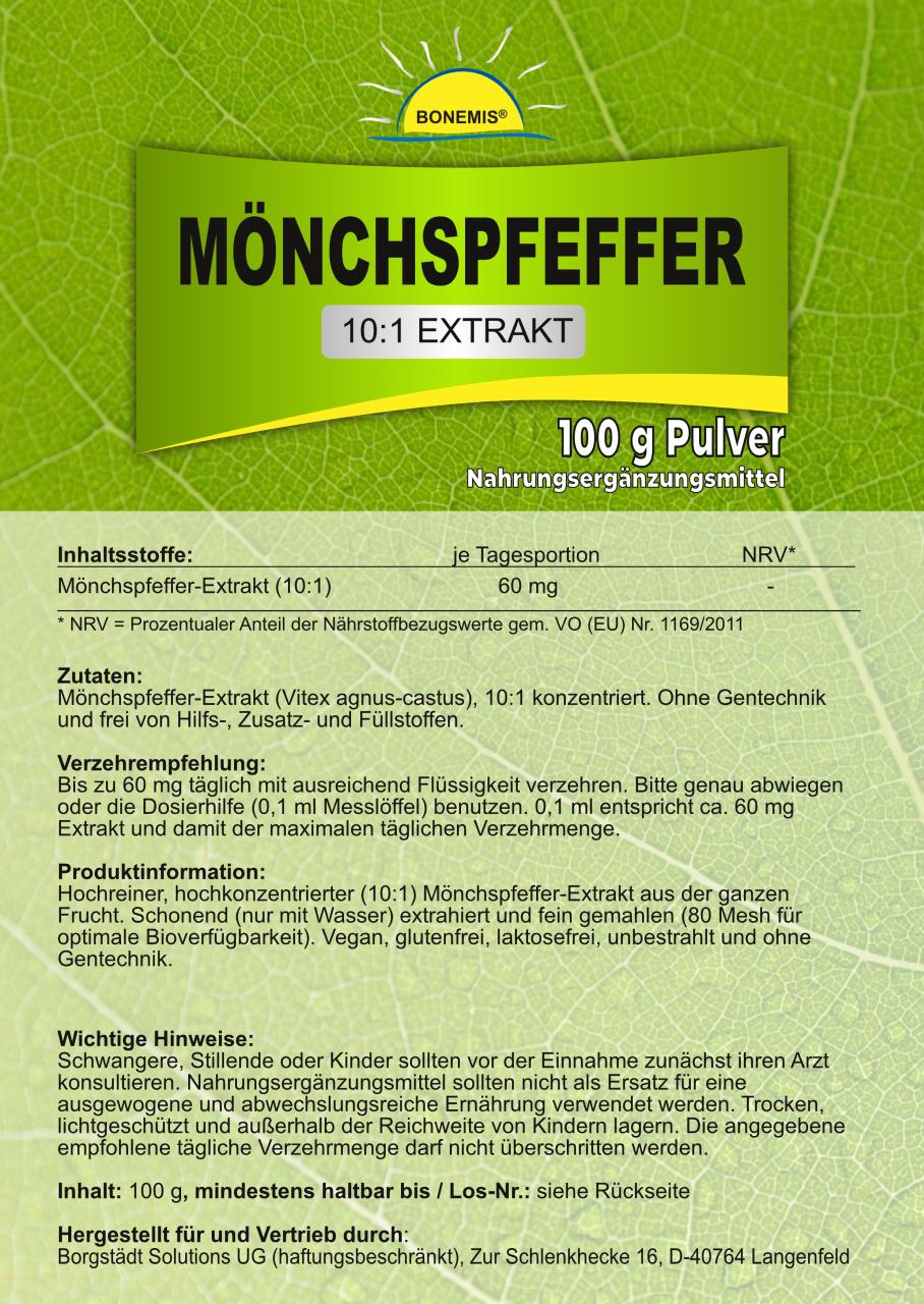 Bonemis® Mönchspfeffer (10:1 Extrakt), ohne Zusatzstoffe, 100 g Pulver im Beutel