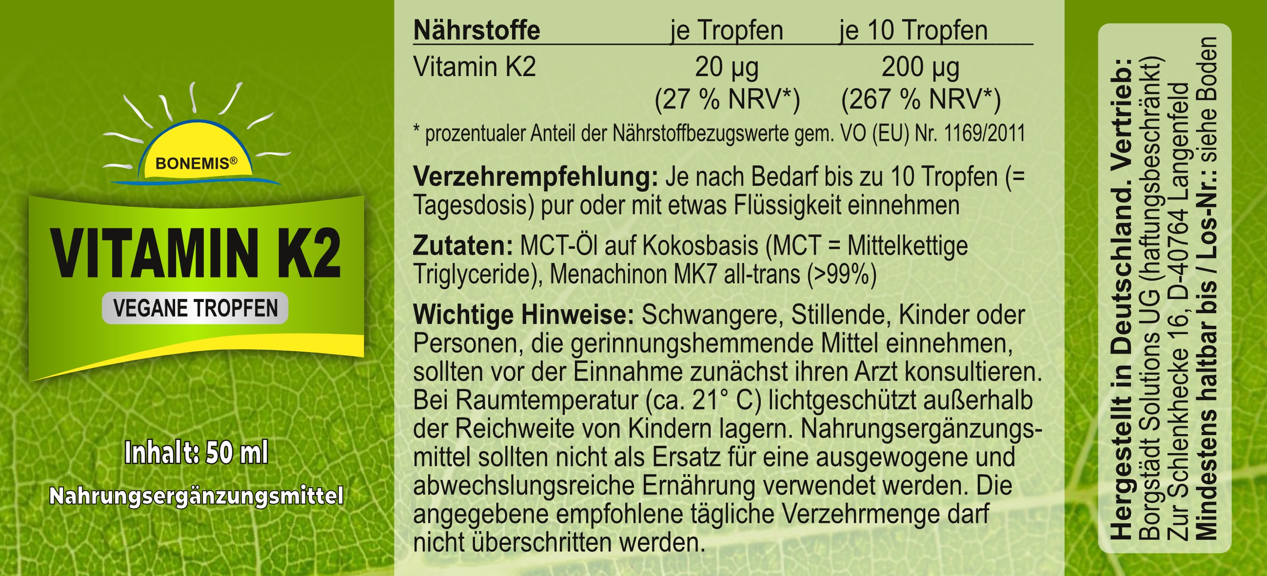 Bonemis® Vitamin K2 Tropfen, Menachinon MK7 all-trans (>99%), 50 ml, mit Pipette