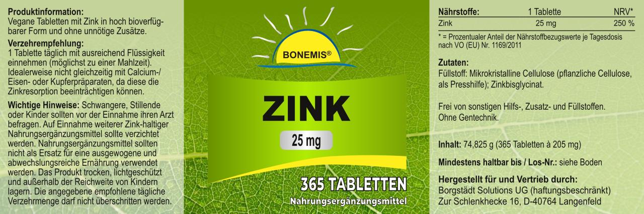 | Zink | 25,00 mg | 250 % |