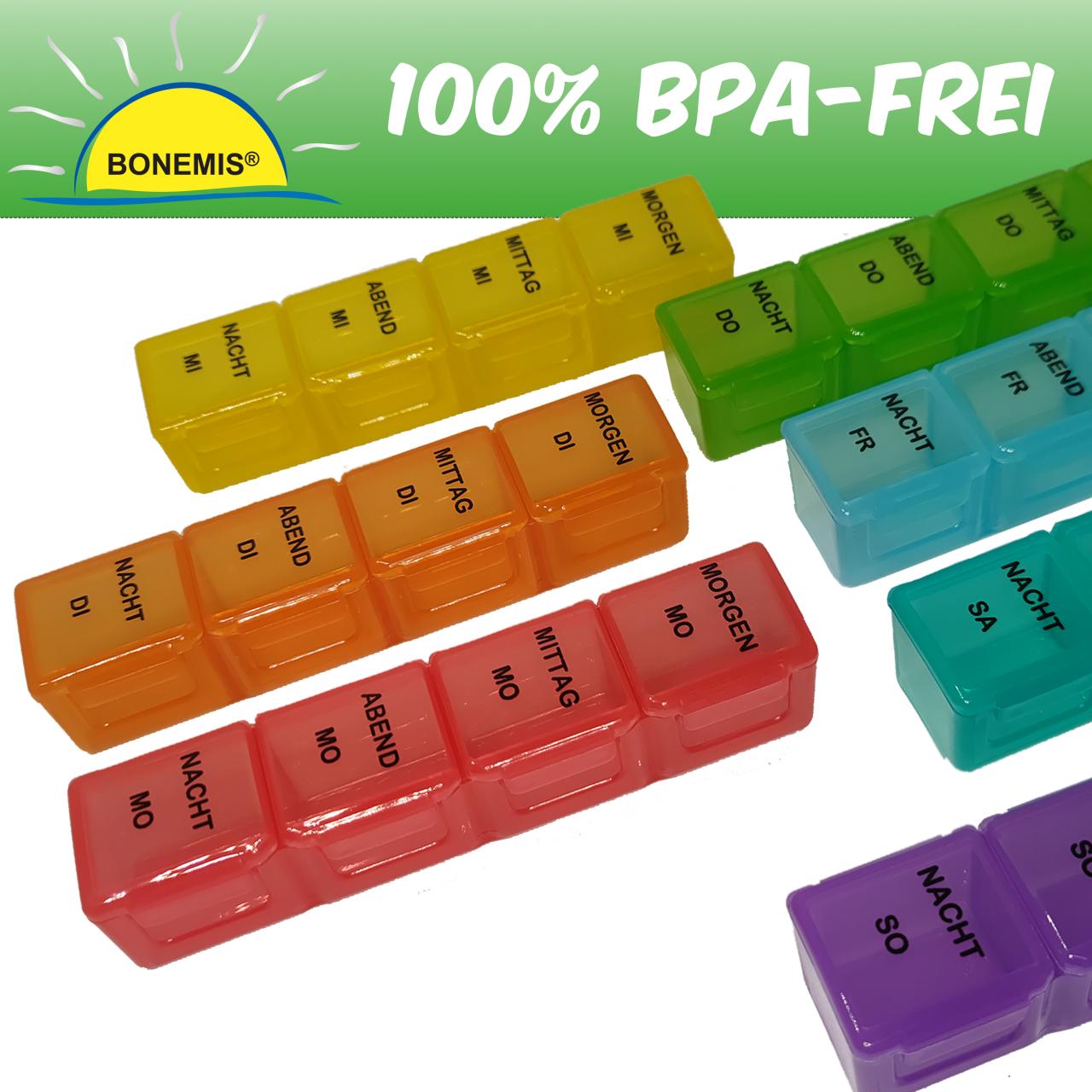 Große Tablettenbox / Pillendose, 7 Tage mit 4-fach Unterteilung, BPA-frei, Bonemis®