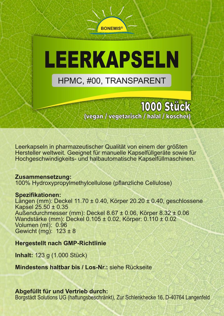 Leerkapseln, Größe 00, transparent, HPMC (vegan / vegetarisch / halal / koscher), 1000 Stück